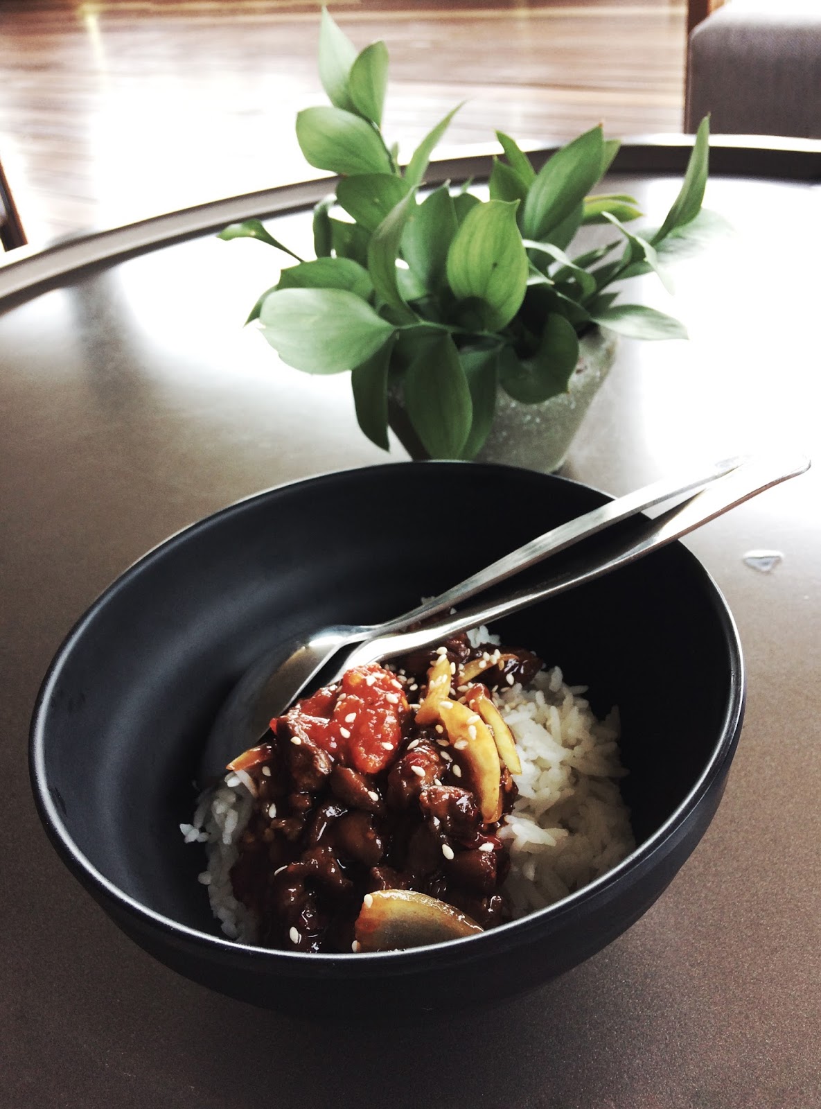 This is the copy of my chicken teriyaki don with an addition of chili sauce.